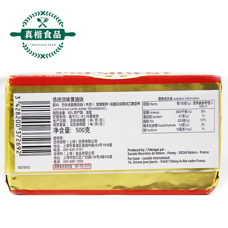 President Light Taste Cream 500g Pieces Loaded Imported Animalic Home Bread Cookie Baking Fermented Cream Block Raw Material