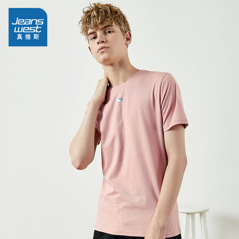 Jeanswest men's spring and summer youth pure cotton round neck slim fit casual short-sleeved printed T-shirt trend casual
