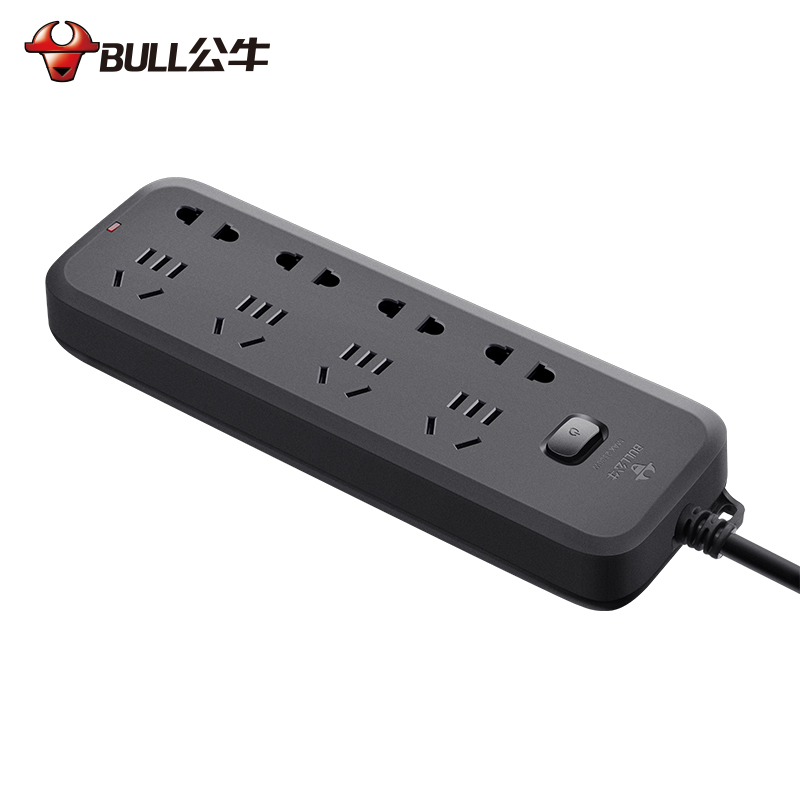 Bull socket GN-B8440H household power supply with switch wiring extension line two-row plug-in board 1 8 meters black