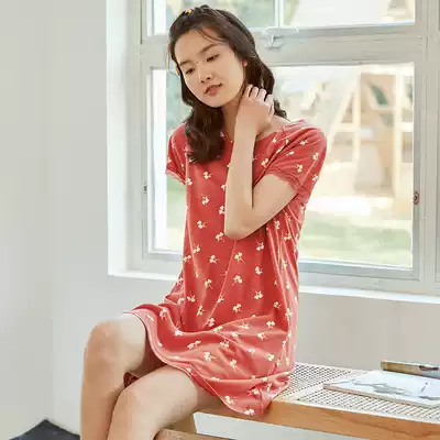 Top Pipepai Nightdress Women Cotton Summer Print Multi-color Top Melon Cotton Lace Short Sleeve Mid-skirt Princess Style
