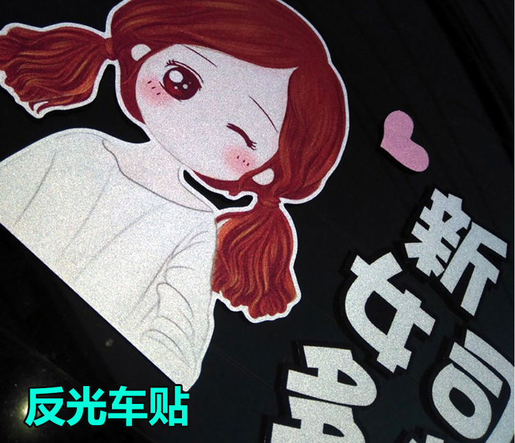 Reflective New Handmaid's Internship Car Sticker Baby Baby Newbie Road Cartoon Microvehicle New Energy Car Rear Window