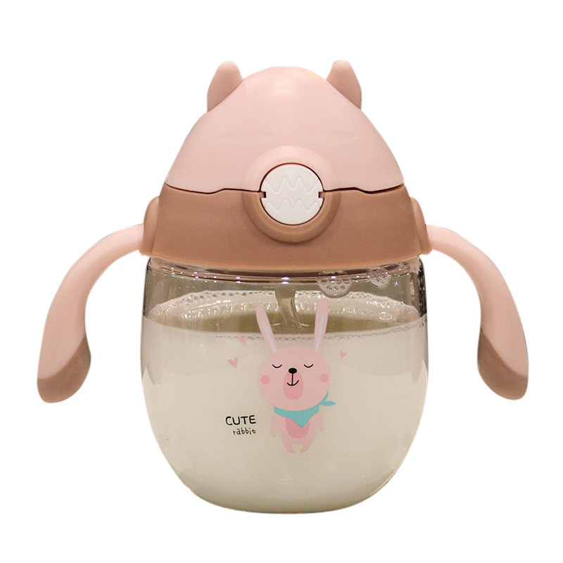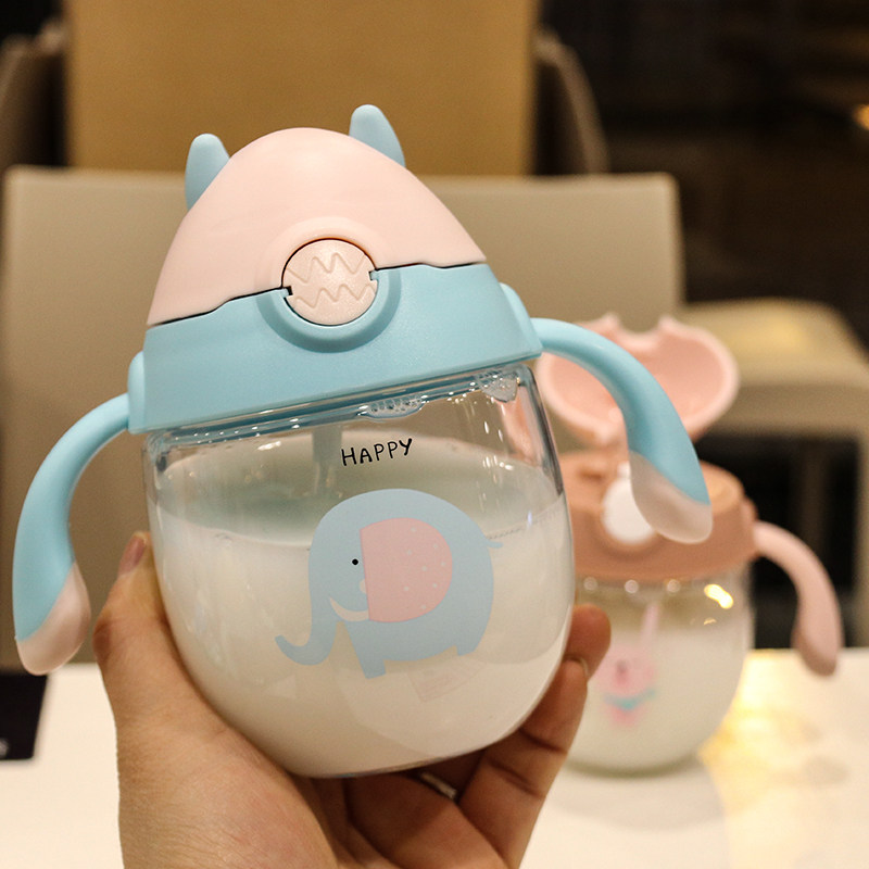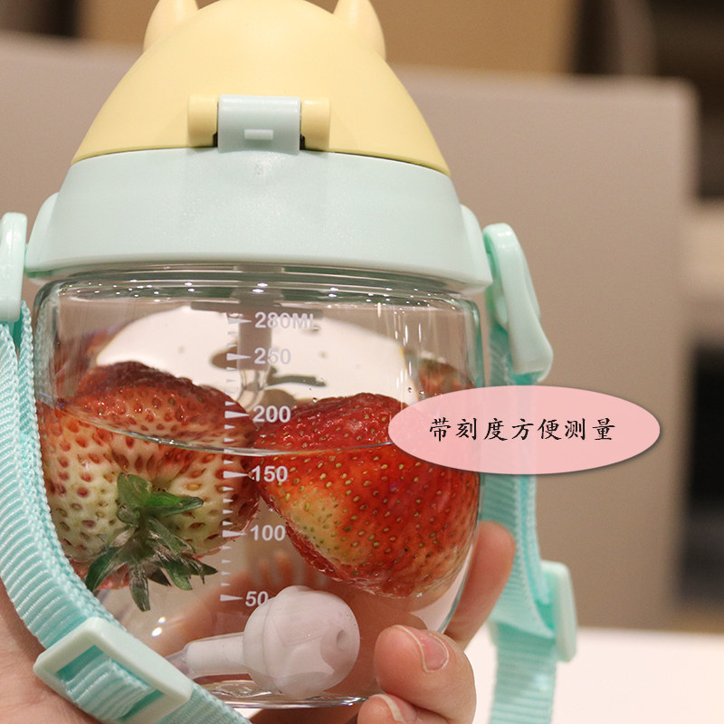 Kindergarten baby drinking cup with straw to prevent leakage and choke plastic cup with scale for children drinking cup