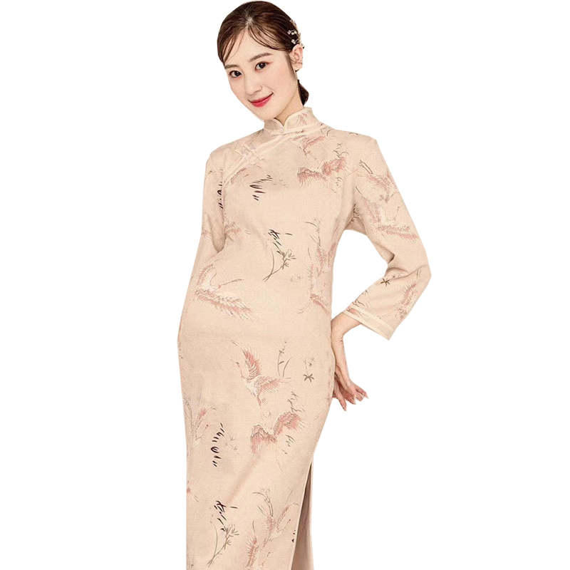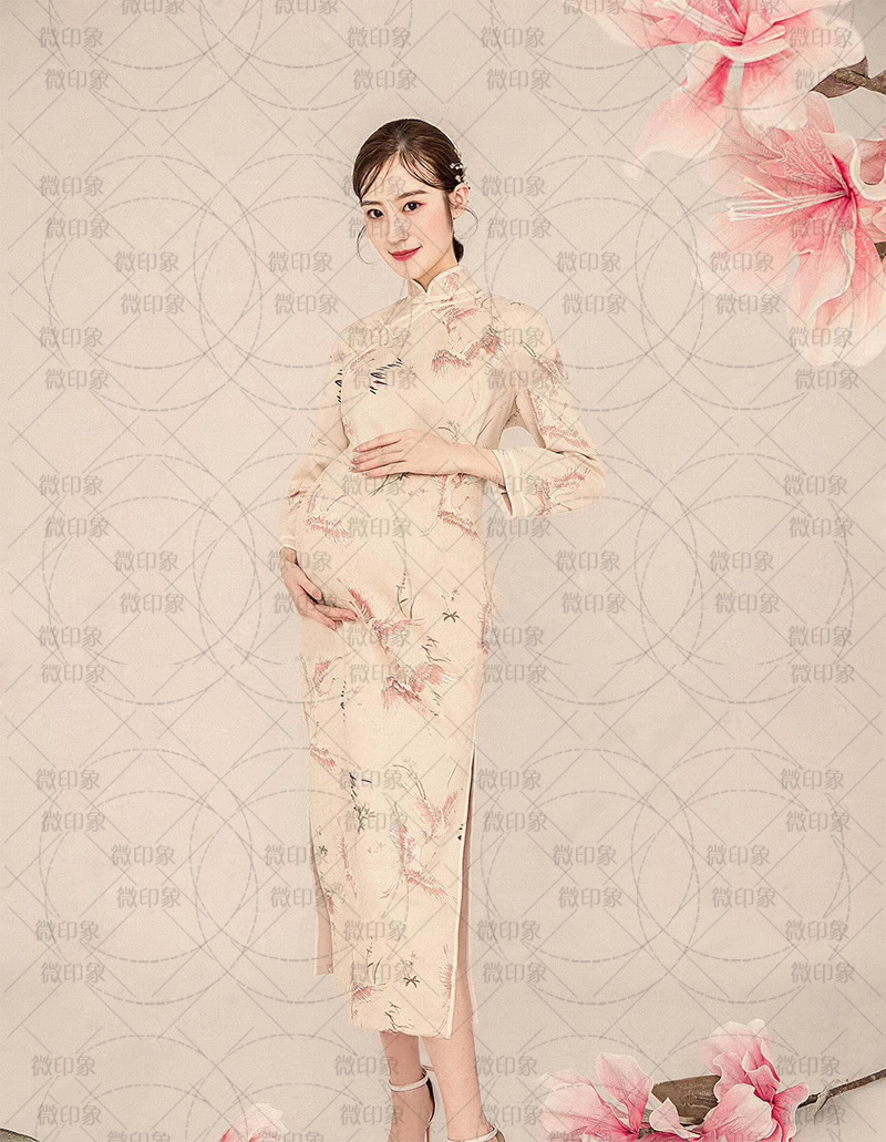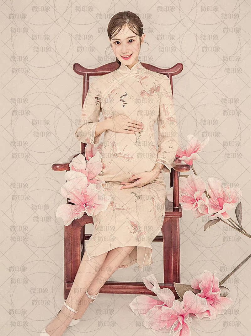 268 Pregnant Women Take Photos Sexy Retro China Wind Fairy Crane Qipao Photo Gallery Writing Real Big Belly Mommy Art Costume