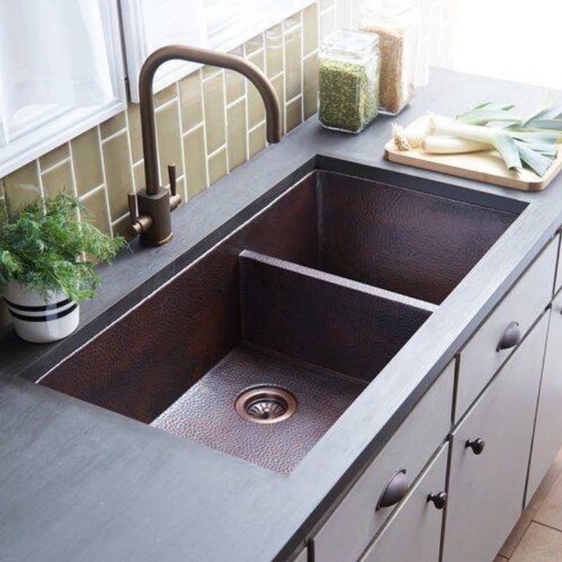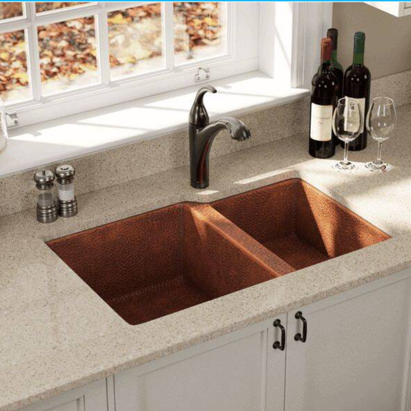 American Red Copper Dishwashing Trough Manual Molding Sink Double Sink Integrated Thickening Ramped Up Washing Pool Dishwashing Tank Shell Customization
