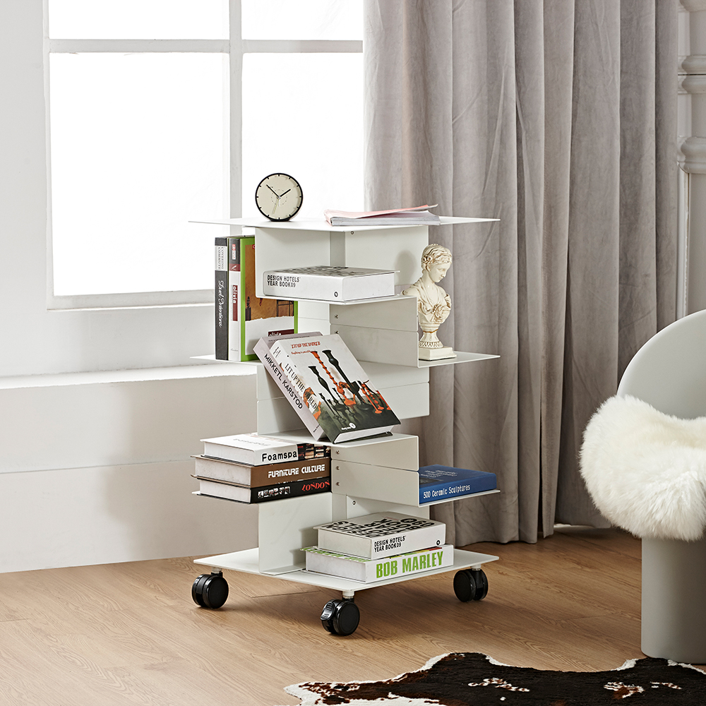 Nordic Iron Art Creative Mobile Shelve With Wheels Stainless Steel Floor Industrial Wind Bookshelves Living-room Office Reception