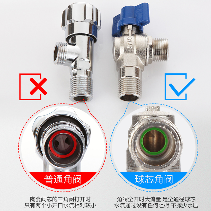 Copper large flow triangle valve Household gas water heater angle valve Extended hot and cold ball valve 6-point 4-point inlet valve