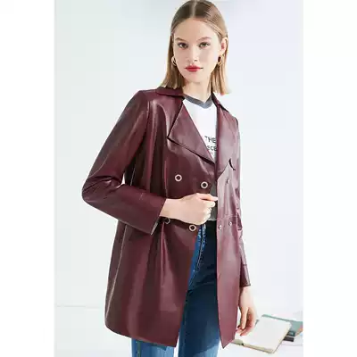 Shopping mall with the same psalm women's clothing 2020 autumn new sheepskin medium and long version waist leather clothing 6C40309050