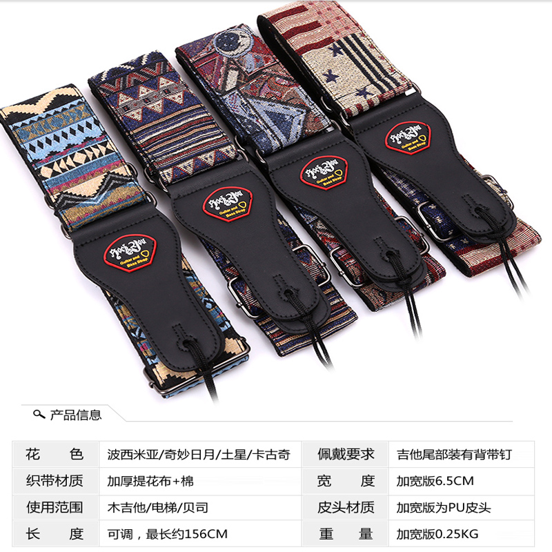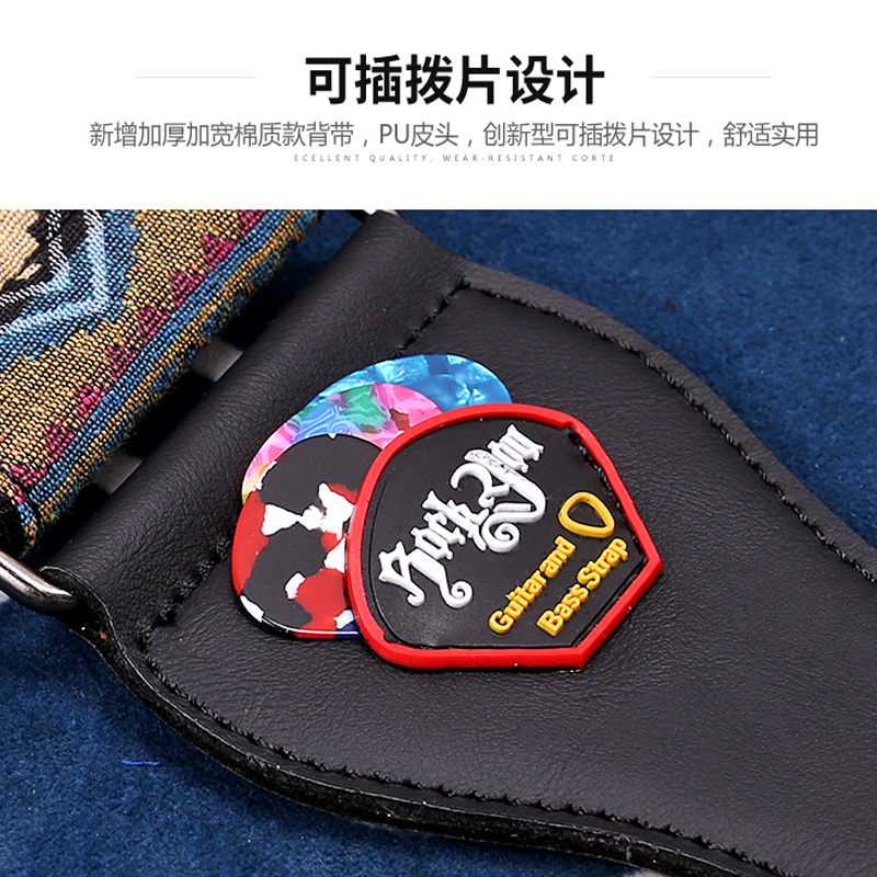 Folk guitar strap widen thick anti-trip PU leather head men's and women's trend rock electric guitar straps