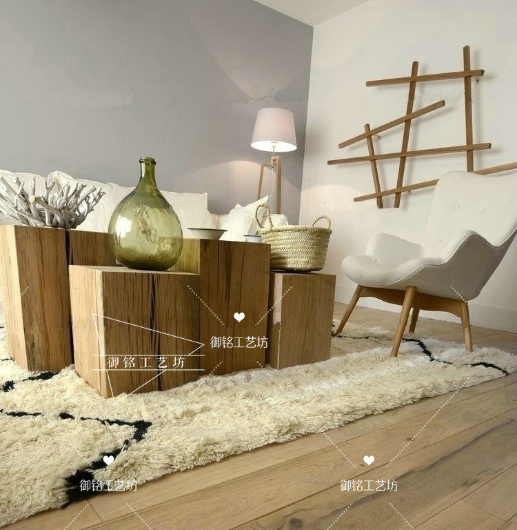 Nordic log pier creative personality root carved edge table low stool square stool tree stump ornaments simple solid wooden stool