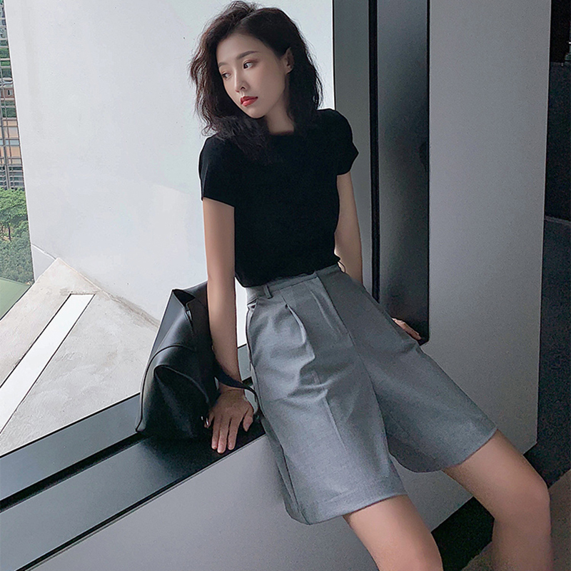 Summer new suit shorts women's casual wild Hong Kong style retro wear high waist loose a word wide leg five-point pants
