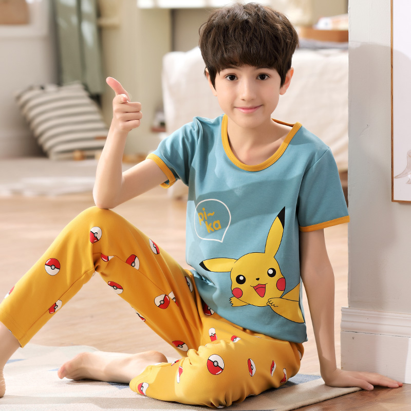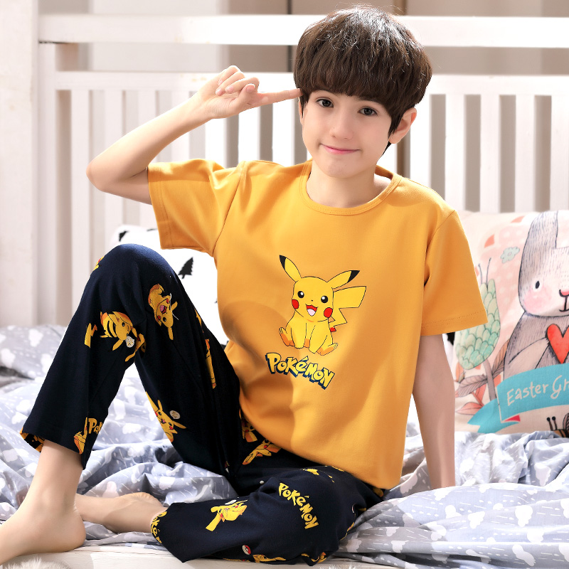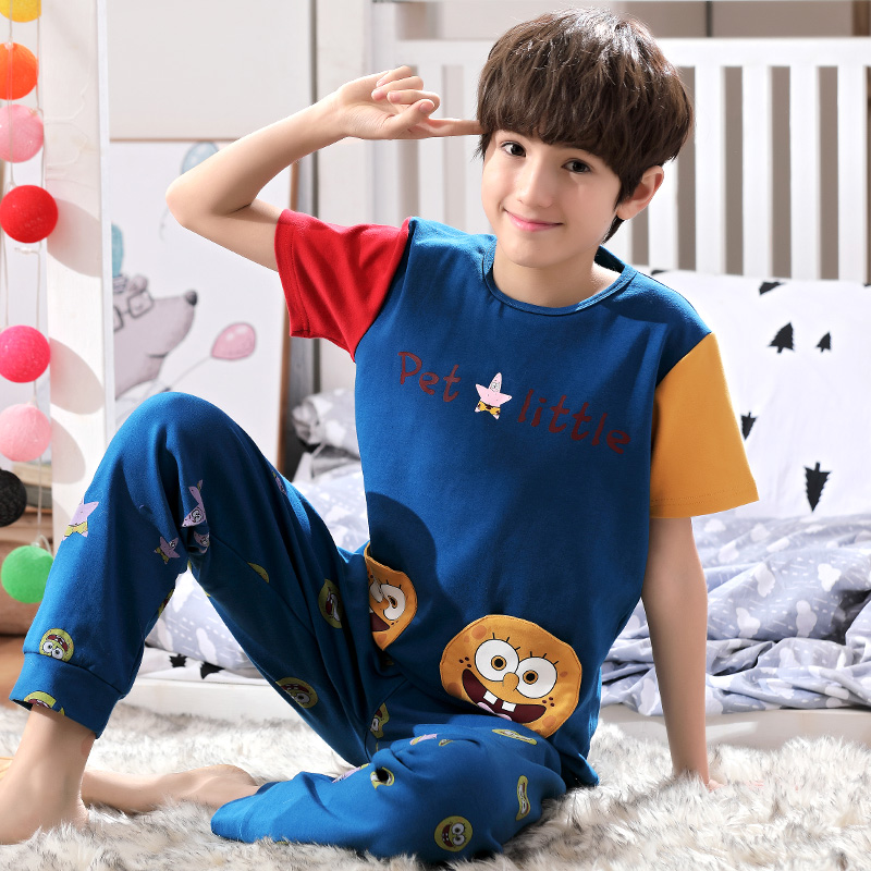 Youth pajamas boy summer cartoon thin section big kids cotton junior high school students short sleeve trousers home wear men