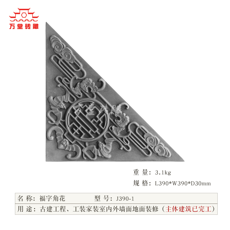 ten thousand Hall of Brick Carving Fu Characters Corner Flowers Four Corners Wall Wall Decoration Photos Wall Background Wall Right Angle Imitation Ancient Building Material Brick Carving Accessories
