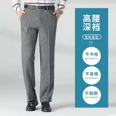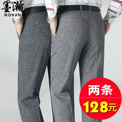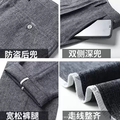 Middle-aged men's trousers Business casual pants summer thin linen 50-year-old dad pants middle-aged and elderly ice silk men's pants