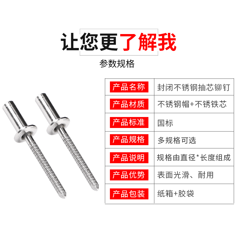Stainless steel closed pumping core rivets stainless steel waterproof rivets stainless steel closed rivets 304 waterproof rivets