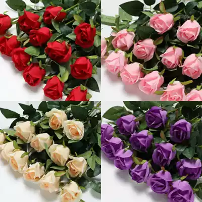Simulation of rose simulation green leaf living room decoration flower arrangement, silk flower single plastic fake flower bouquet dry flower