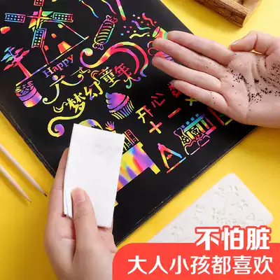 100 sheets of colorful scraping paper color children's primary school kindergarten art creative painting painting paper hanging painting a4 black scraping paper set handmade graffiti color scraping paper toothpick painting discoloration
