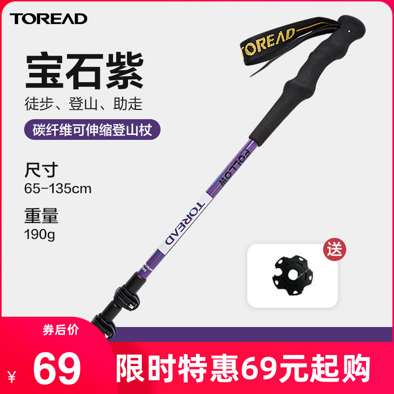 Pathfinder Carbon Fiber Ultralight Telescopic Trekking Pole Cane Light Portable Outdoor Hiking Folding Non-Slip Crutches