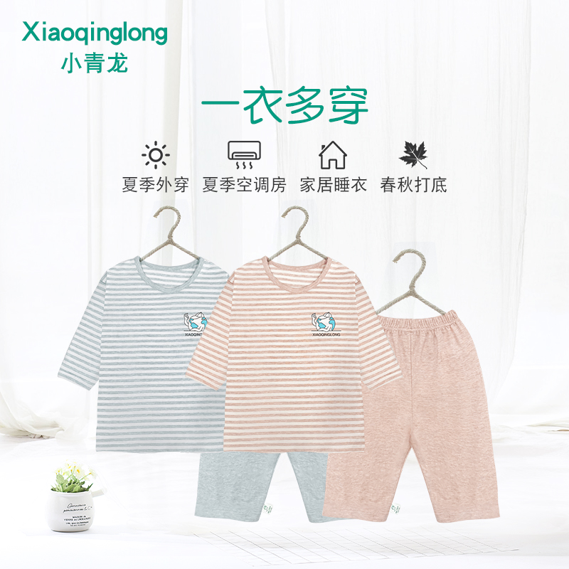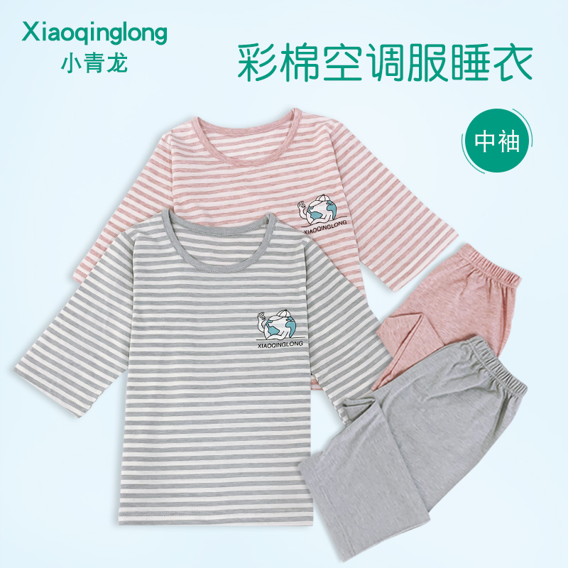 Xiaoqinglong summer thin colorful cotton children's pajamas for boys and girls baby mid-sleeve air-conditioned clothes for children and older children