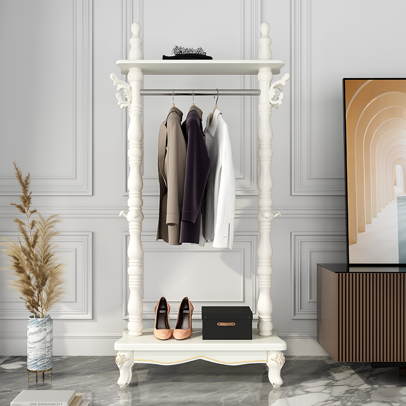 European-style solid wood coat rack floor-to-ceiling bedroom shelf foyer living room hanging hanger home American simple clothes rack