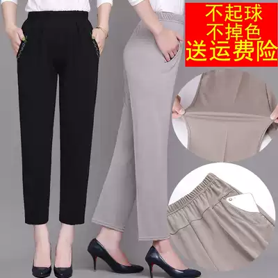 Mother's nine-point pants summer thin large size elastic high waist casual loose middle-aged and elderly female grandma straight pants