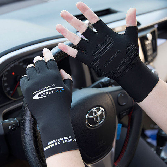 Thin gloves men's missing two-finger fishing riding sunscreen ice silk summer driving elastic anti-ultraviolet half-finger gloves