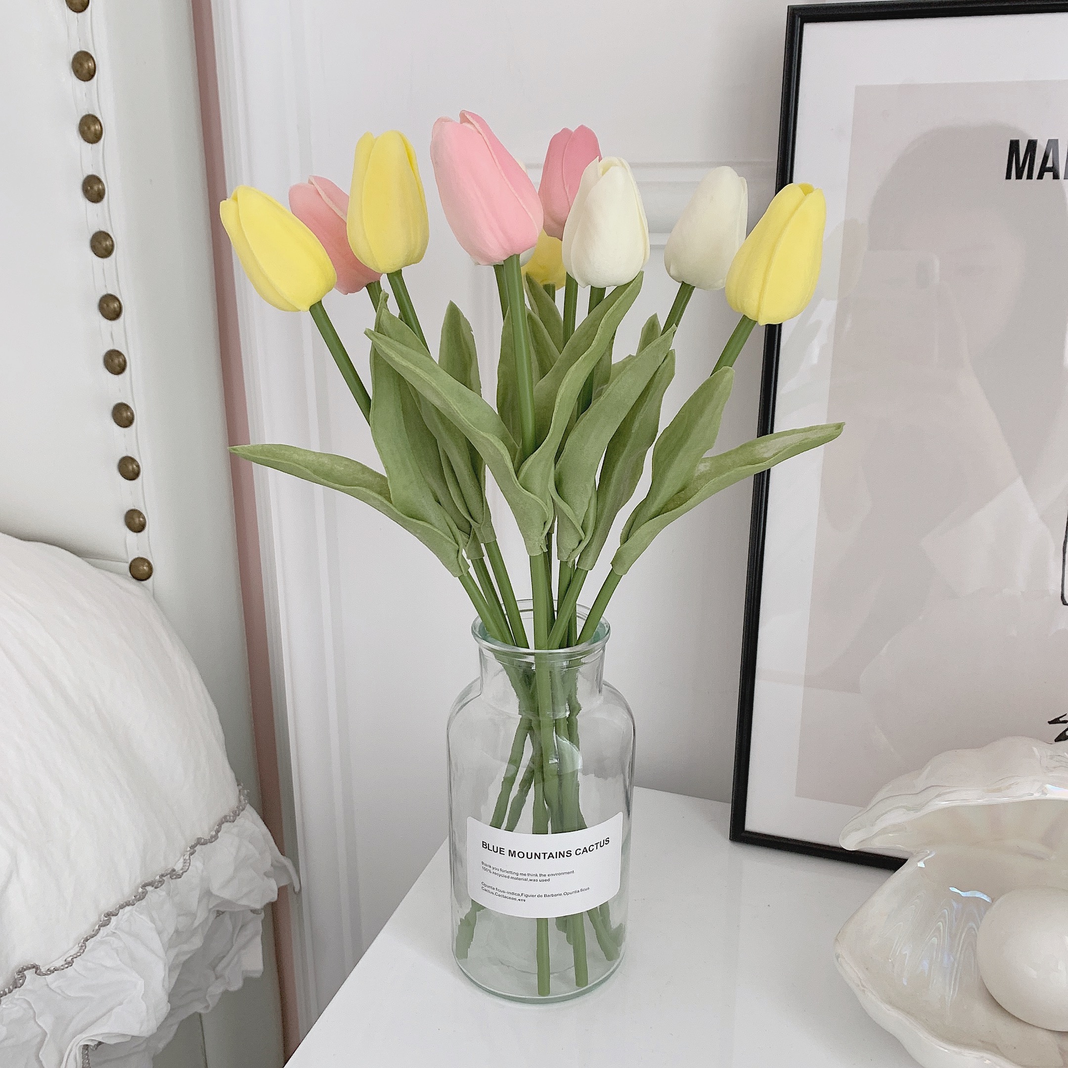 ins Tulip imitation flower bouquet fake flower high-end bedroom decoration living room ornaments dining table table interior furnishings