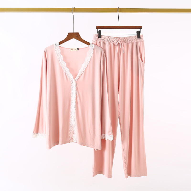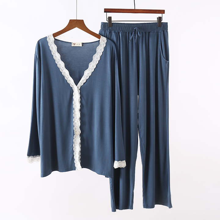 2022 long sleeve pyjamas women's spring and summer Han version of thin suit air conditioning suit Loose Ice Silk Modale Cardiovert