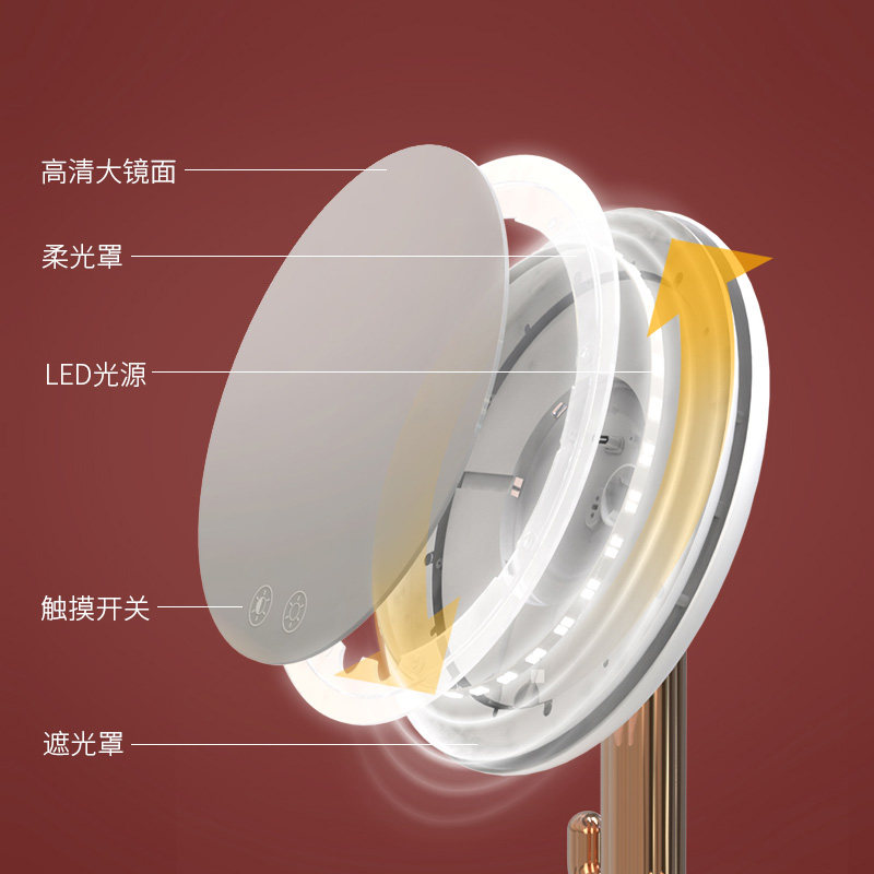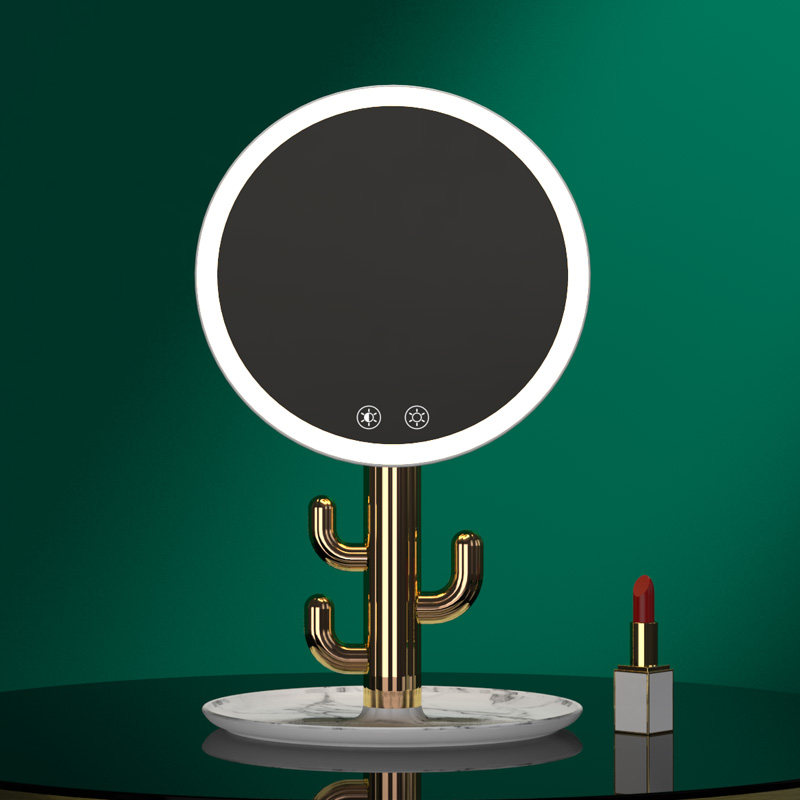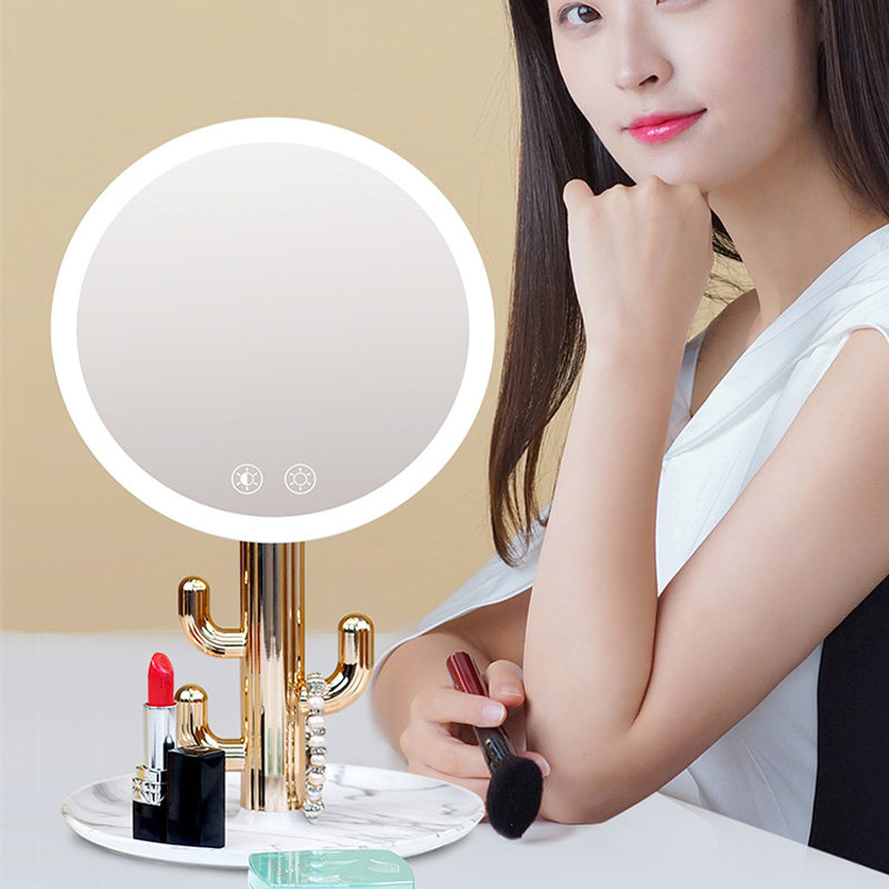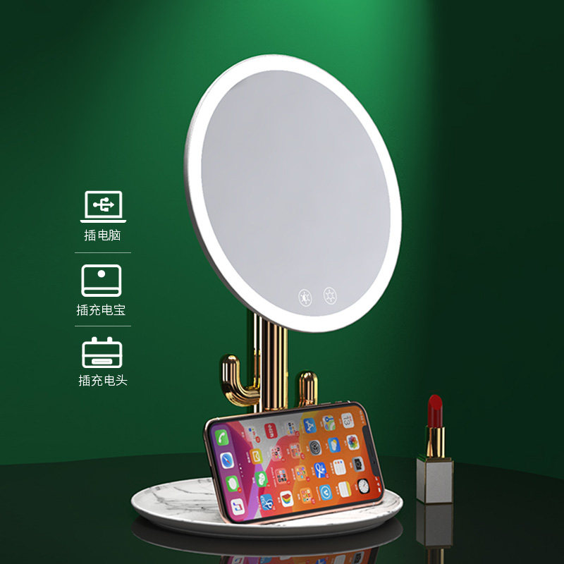 Makeup mirror Desktop LED light desktop with light makeup bedroom storage mirror Dormitory portable net red girl large