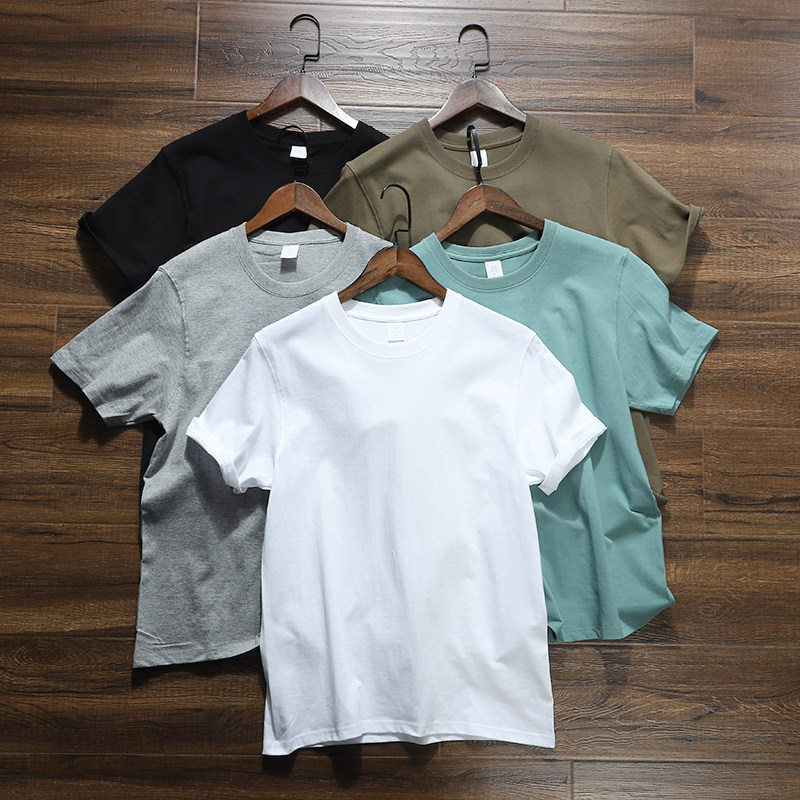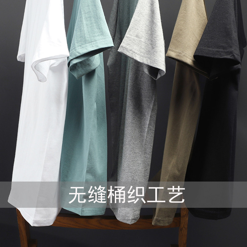 Overbearing 230g seamless barrel woven summer men's and women's couples round neck basic solid color cotton base T-shirt T2881