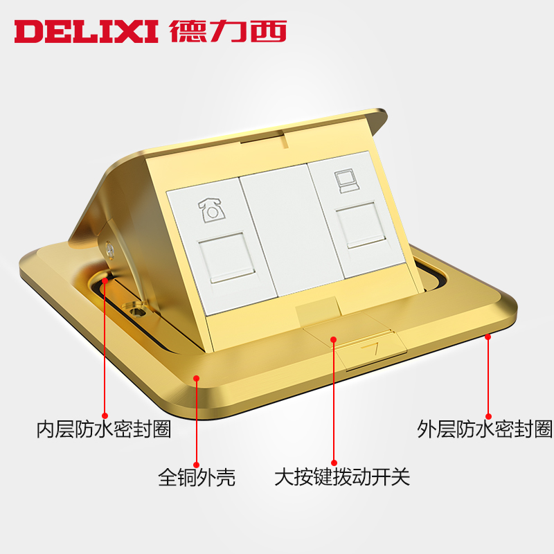 Delixi ground plug-in switch socket anti-absorbent bullet starting floor socket copper ground plug-in phone computer ground socket