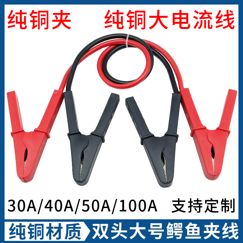 Pure copper double head crocodile clamp charging line 50A 100A current wire battery clamp accumulator inverter connecting wire