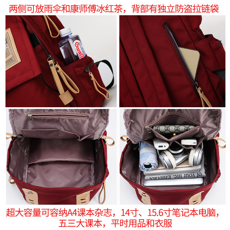 Wine red (waterproof, non-fading, back anti-theft bag, side pocket, 15-6-inch computer compartment) black (waterproof, non-fading, back anti-theft bag, side pocket, 15-6-inch computer compartment)