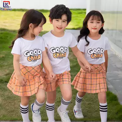 School uniform suit Primary school summer clothes Short-sleeved kindergarten teacher garden clothes overalls Class clothes Summer suit Parent-child clothing