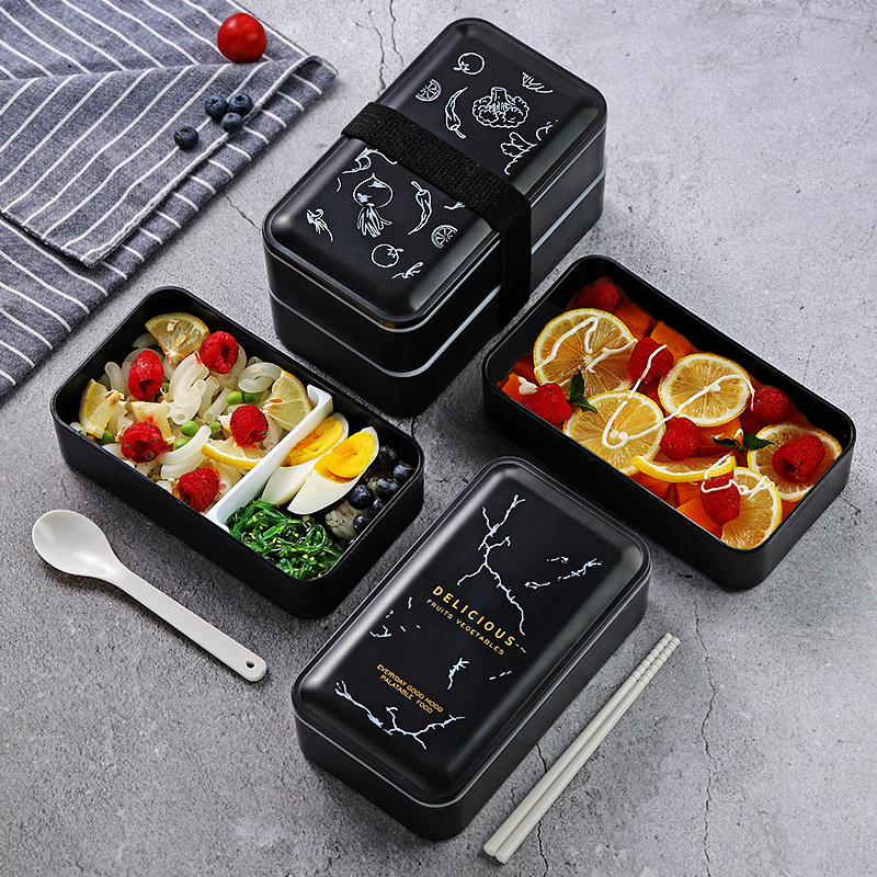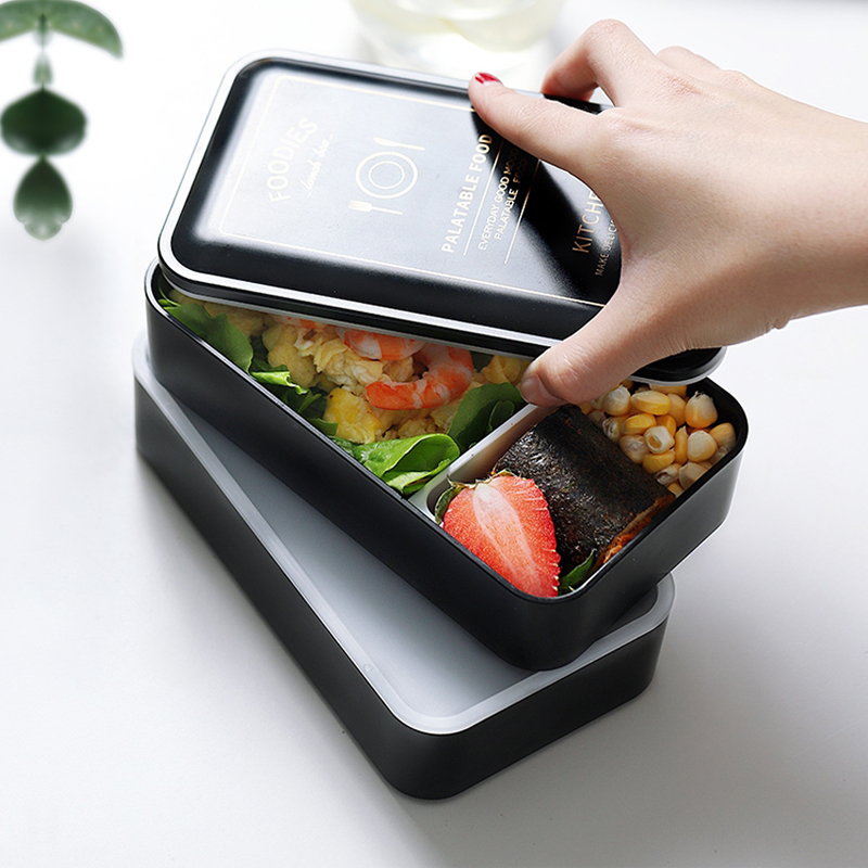 Office Workers Lunch Box Double Student Salad Microwave Oven Lunchbox Portable Insulated Compartable Heating Meal Kit Suit