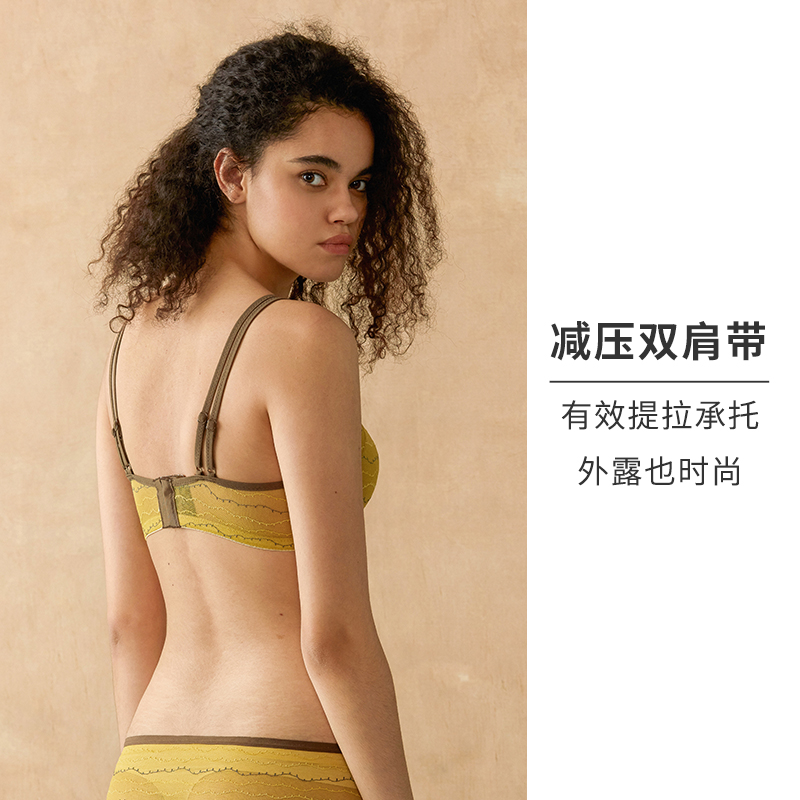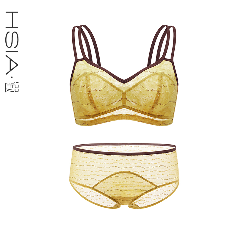 HSIA ya thin underwear set women summer color double shoulder strap breathable mesh without steel ring big chest small bra