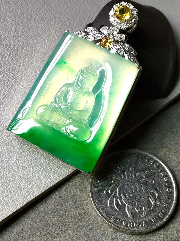 Natural ice watch jade pendant old pit Myanmar green flower without card jade pendant 18k mosaic of men and women