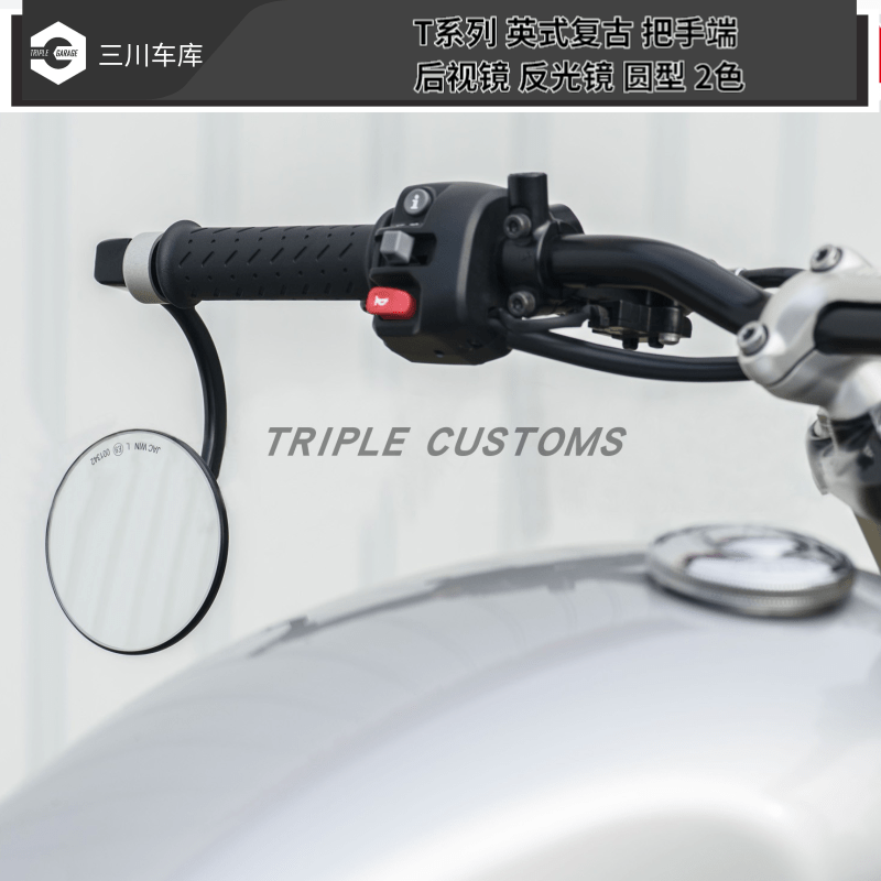 T series English style retro handle end rear camera mirror reflective round 2 colors