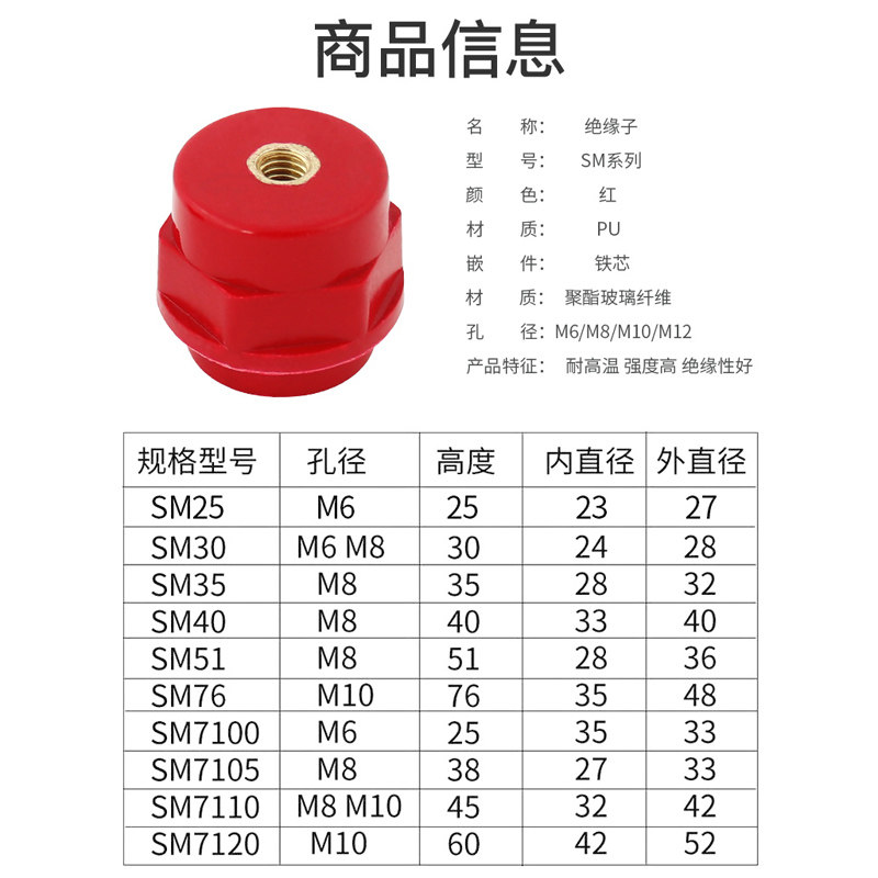 SM51 insulator distribution box high 51mm *M8 high quality copper screw high-strength spindle type insulation column m6m10