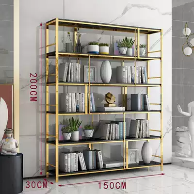 Light luxury bookshelf metal living room multi-layer shelf stainless steel bookcase floor titanium color mesh red iron display rack