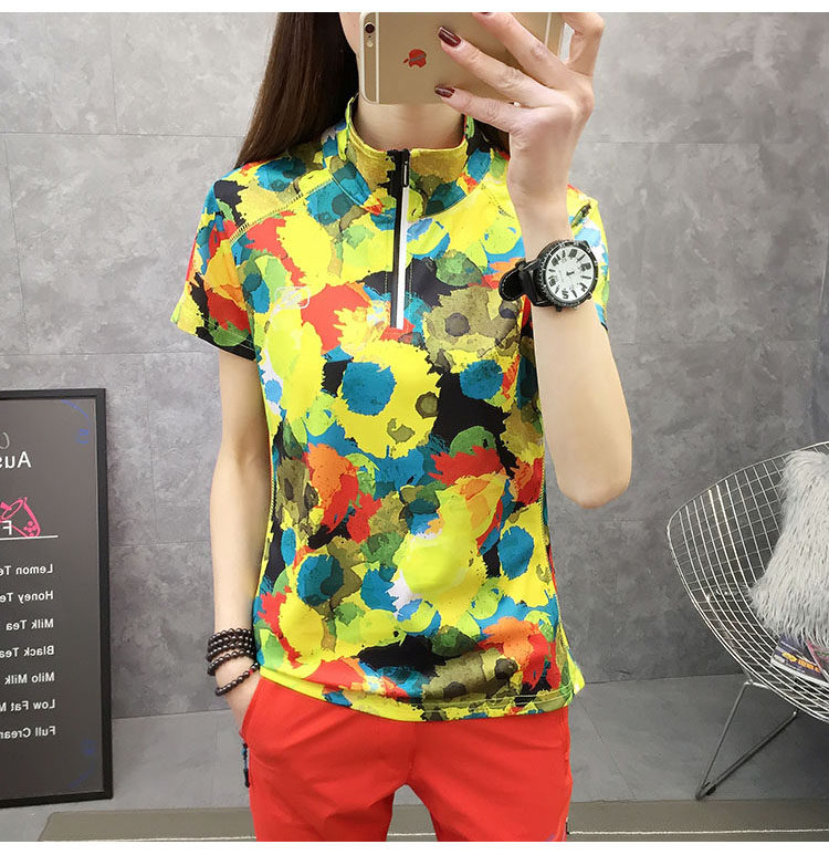 The new loose stand - up T - shirt printed running fitness half - sleeve outdoors for the short - sleeved climbing suit in 2020