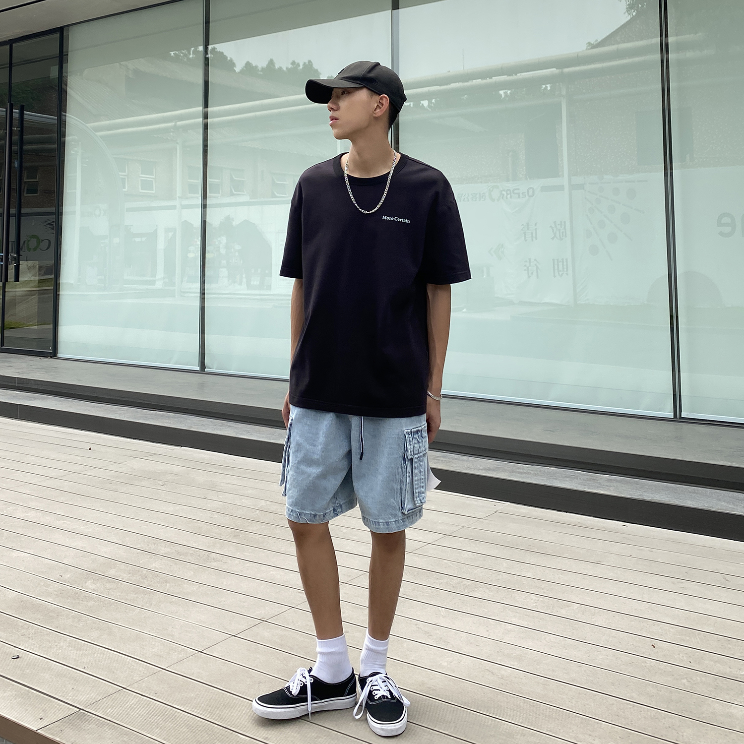 OFFBORD short sleeve t-shirt male summer back letter printed loose casual pure cotton white boy T-shirt