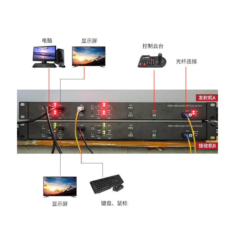 aopre (Ober Interconnection) 2 4CH HDMI HD VIDEO Optical Transceiver 1080P can be added USB Rackmount HDMI Video to Fiber Optic 2CH Two-way HDMI Optical Transceiver with Audio FC