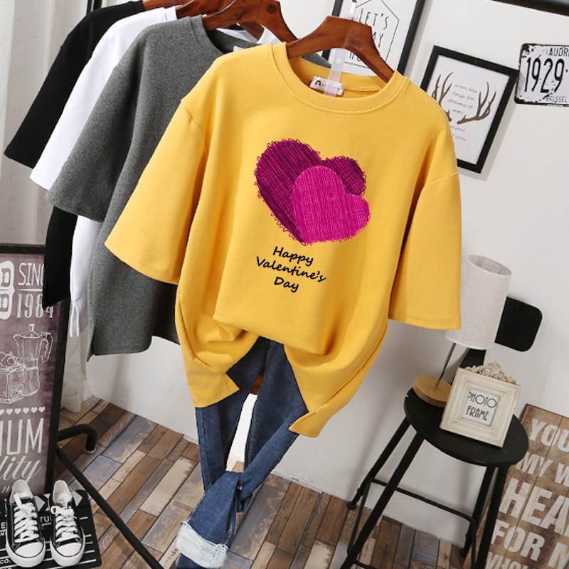 Large yards of fat sister cotton short sleeve t shirt loose 200 pounds of thin belly shading in summer clothes