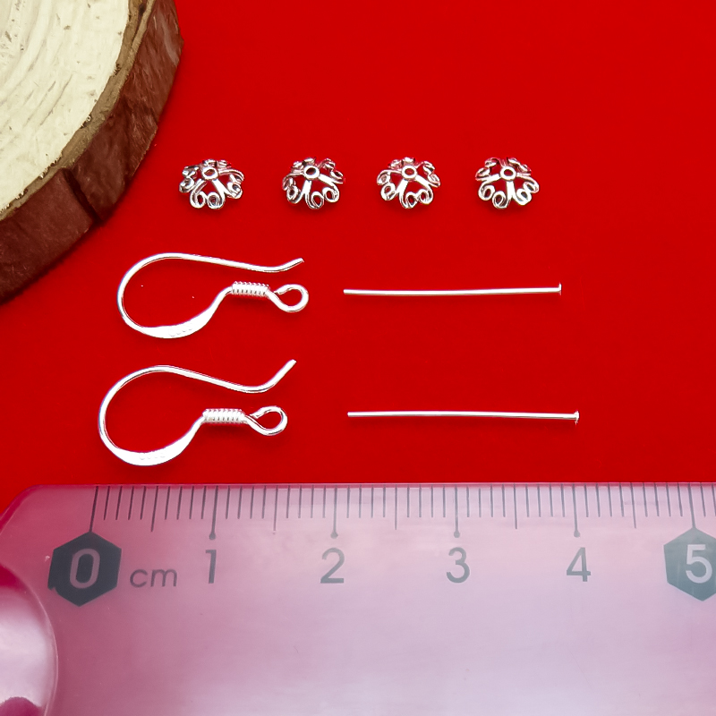 990 sterling silver ear hooks, earring hooks, handmade DIY earrings, earrings, connection accessories, T-needle, flat-head needle, material bag