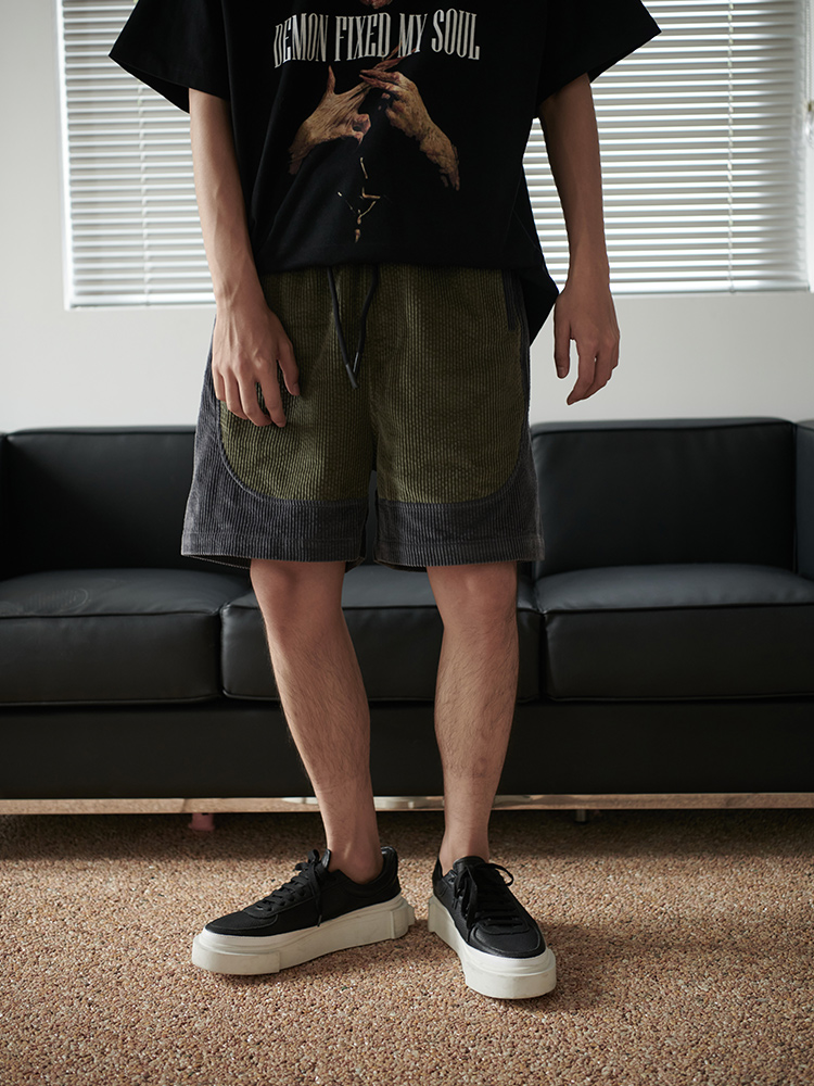 The Dirty Collection corduroy color drawstring casual tidal brand five-point loose big shorts