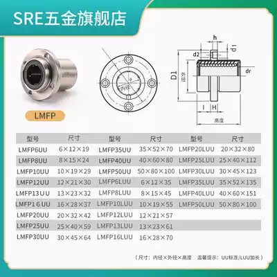 SRE Guided round flange Linear ball bearing Lengthened LMFP10UU 12 16 20 25 30 35 40
