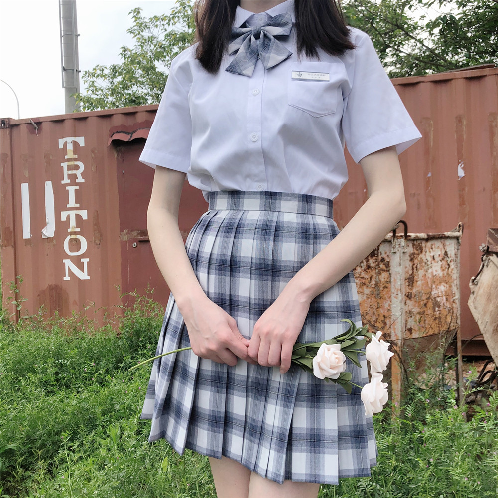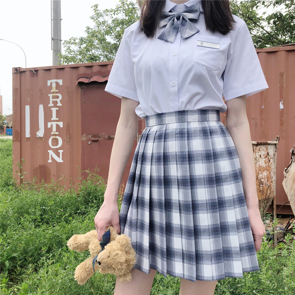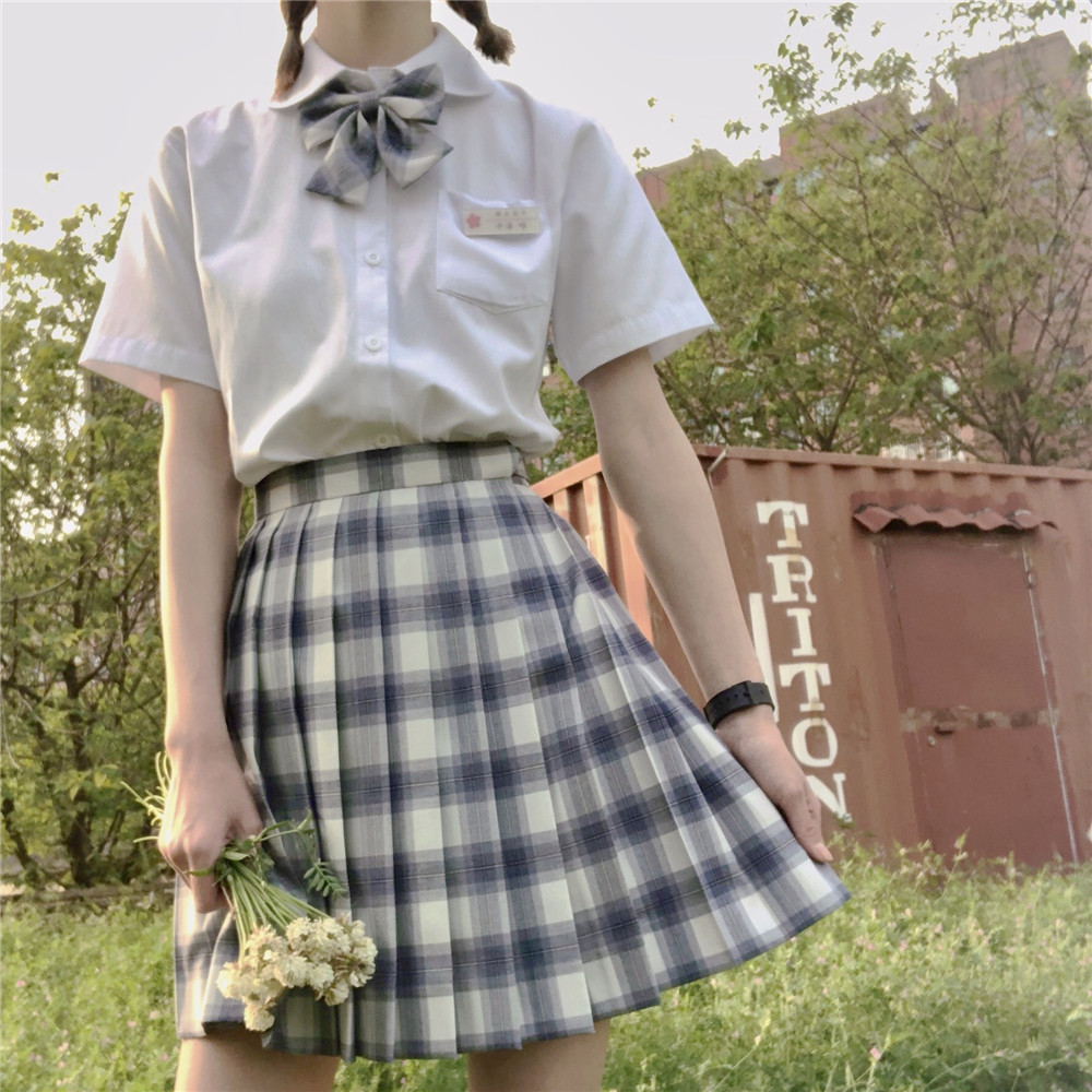 (Black Blue Grid) Day Style Orthodox Jk Plexigu Dress Uniform Skirt Spring Summer Short Skirt Finished Bugg Dress