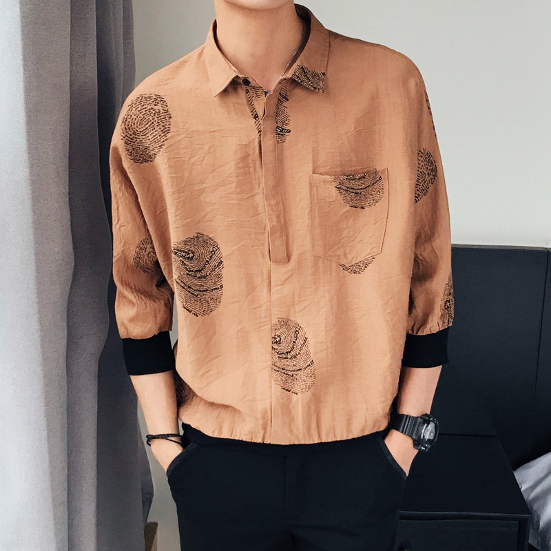 50% sleeve shirt for men's hooded blouses Youth Korean version Summer men's clothing handsome 100 lap polo collar trendy half sleeves