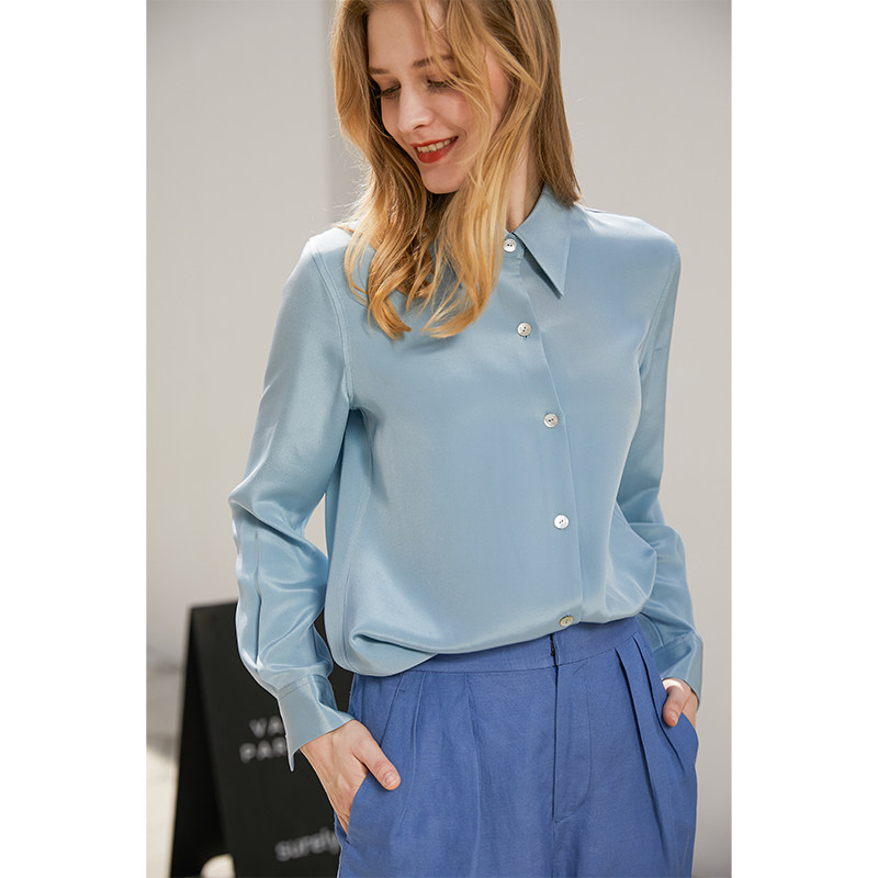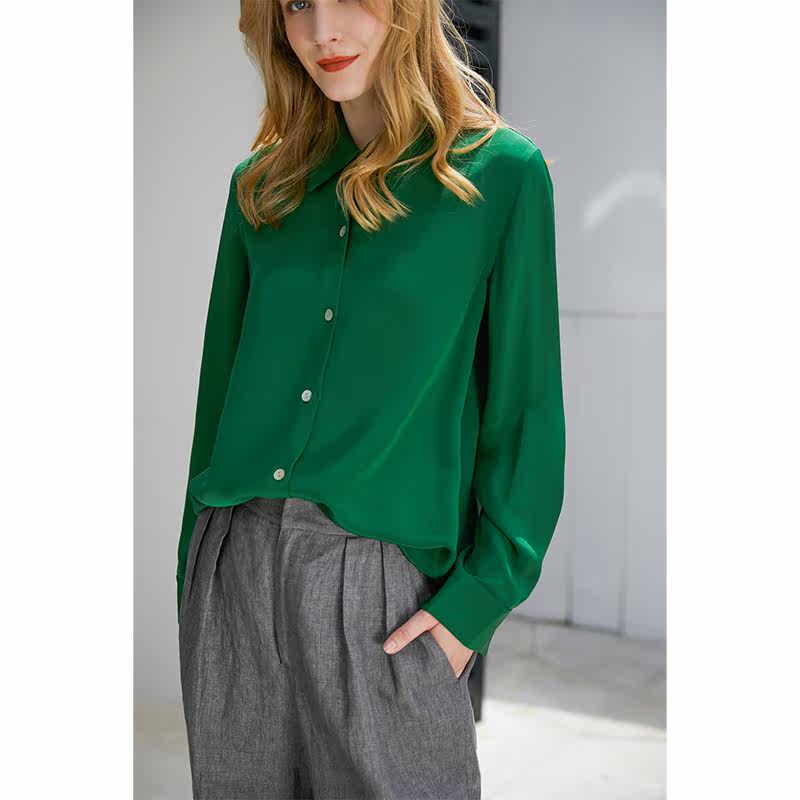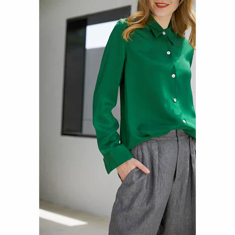 Green shirt female design sense niche light mature retro port flavor heavy Hangzhou silk shirt 40 m 2020 New