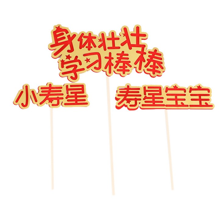 New Baking Decoration Children are strong and strong learning stick birthday baby birthday cake decoration plug-in